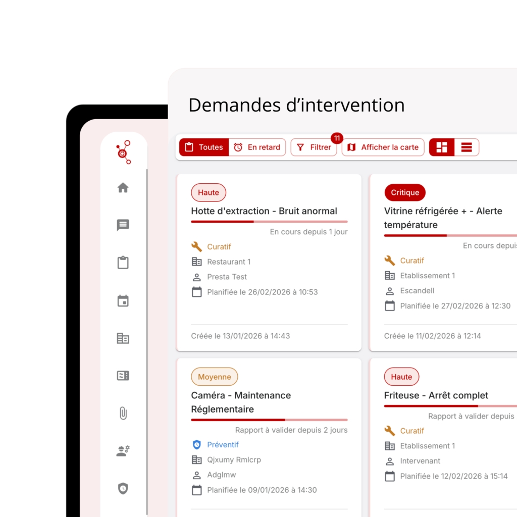Réduction des pannes, optimisation des coûts, suivi multi-sites et transparence totale des interventions. Amélioration de la disponibilité des équipements et planification intelligente selon criticité et localisation des magasins.