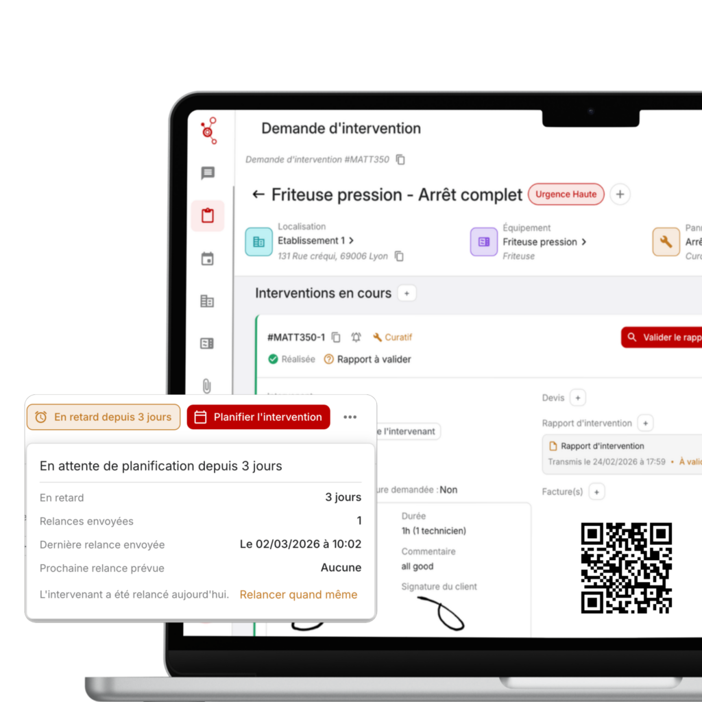 - Centralisez les rapports d’intervention, validez les devis et les factures en toute sécurité